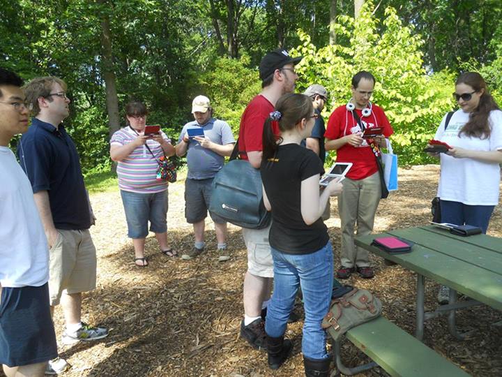 We walked around the gardens, found plenty of Public Works (“OMG a lamp post!” lol), saw some real-life tadpoles, and found inspiration for creating our own floral arrangements in our Animal Crossing towns!  After the tour, we settled into the picnic area to play some local wireless.  StreetPass Long Island handed out fan-made (created by SPLI Co-Founder, Debbie!) “Hybrid Flower Guides”, which included gardening tips, a flower checklist, and a color matchup chart for spawning hybrids in-game.
